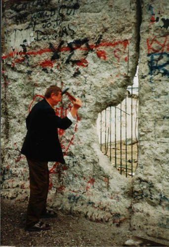 Bischbrunns Bürgermeister Richard Krebs 1990 als »Mauerspecht«. Noch heute leistet er mit seinen Bürgerreisen einen Beitrag zur deutsch-deutschen Einheit. Foto: privat