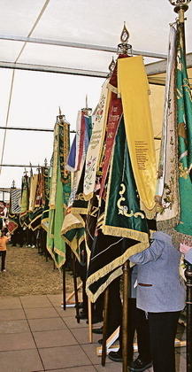 Ein buntes Bild boten die Fahnen der Schützenvereine im Festzelt.