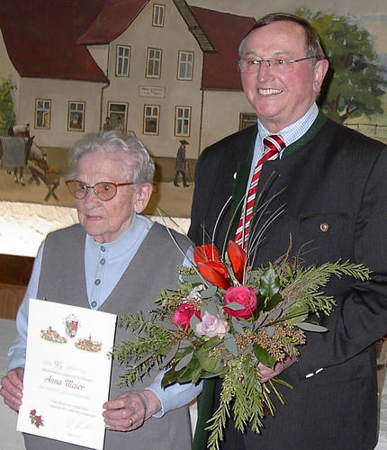 Anna Maier feierte ihren 95. Geburtstag, wozu Bischbrunns Bürgermeister Richard Krebs gratulierte.