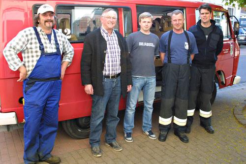 Der »Chef« und seine Bischbrunner Feuerwehrmänner: (von links) Horst Brehm, Richard Krebs, Christoph Schwab, 1. Kommandant Michael Wiesmann und noch ein Christoph Schwab.