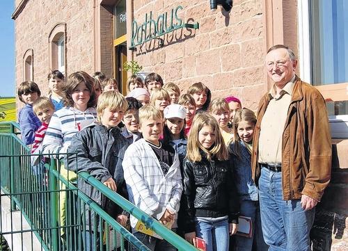 OBERNDORF (mk) Die Schüler der 4. Klasse der Volksschule Bischbrunn besuchten mit ihrer Lehrerin Annette Scheiner Bürgermeister Richard Krebs im Rathaus Oberndorf, um „ihm Löcher in den Bauch zu fragen“. Dabei informierte er, dass er im heutigen Sitzungs- und Trauzimmer einst das „Einmaleins“ und das „ABC“ gelernt hat, denn das Rathaus ist in der alten Schule in Oberndorf untergebracht. Gut präpariert stellten sie Fragen nach den Aufgaben der Gemeinde, woher sie ihre Einnahmen hat, wie man Gemeinderat oder Bürgermeister wird und was man tun muss, um wieder gewählt zu werden. Dabei erfuhren die Viertklässler auch den üblichen Tagesablauf des Bürgermeisters vom frühen Morgen bis oft in die späten Abendstunden und auch an den Wochenenden.