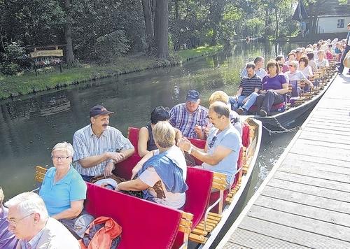 Die Teilnehmer der CSU-Bürgerreise bei der Kahnfahrt durch den Spreewald.