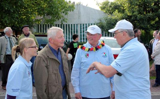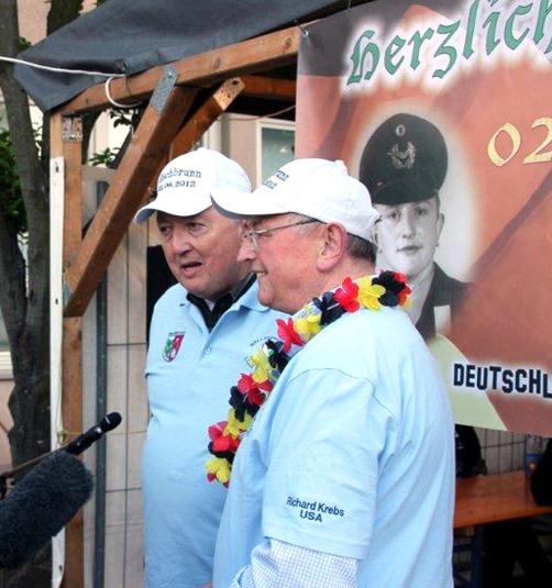 Richard Krebs (German) at left, with his friend Richard Krebs (American), enjoying being the center of attention at a festival in their honor in Bischbrunn, Germany, June 2nd.