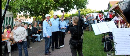 A crowd of well-wishers participate in the community festival honoring the two Richard Krebs in Germany, June 2012.