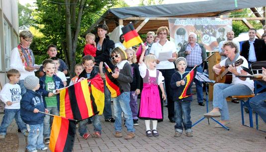 German kindergarten children sang for the two Richard Krebs at the celebration in Bishbrunn.